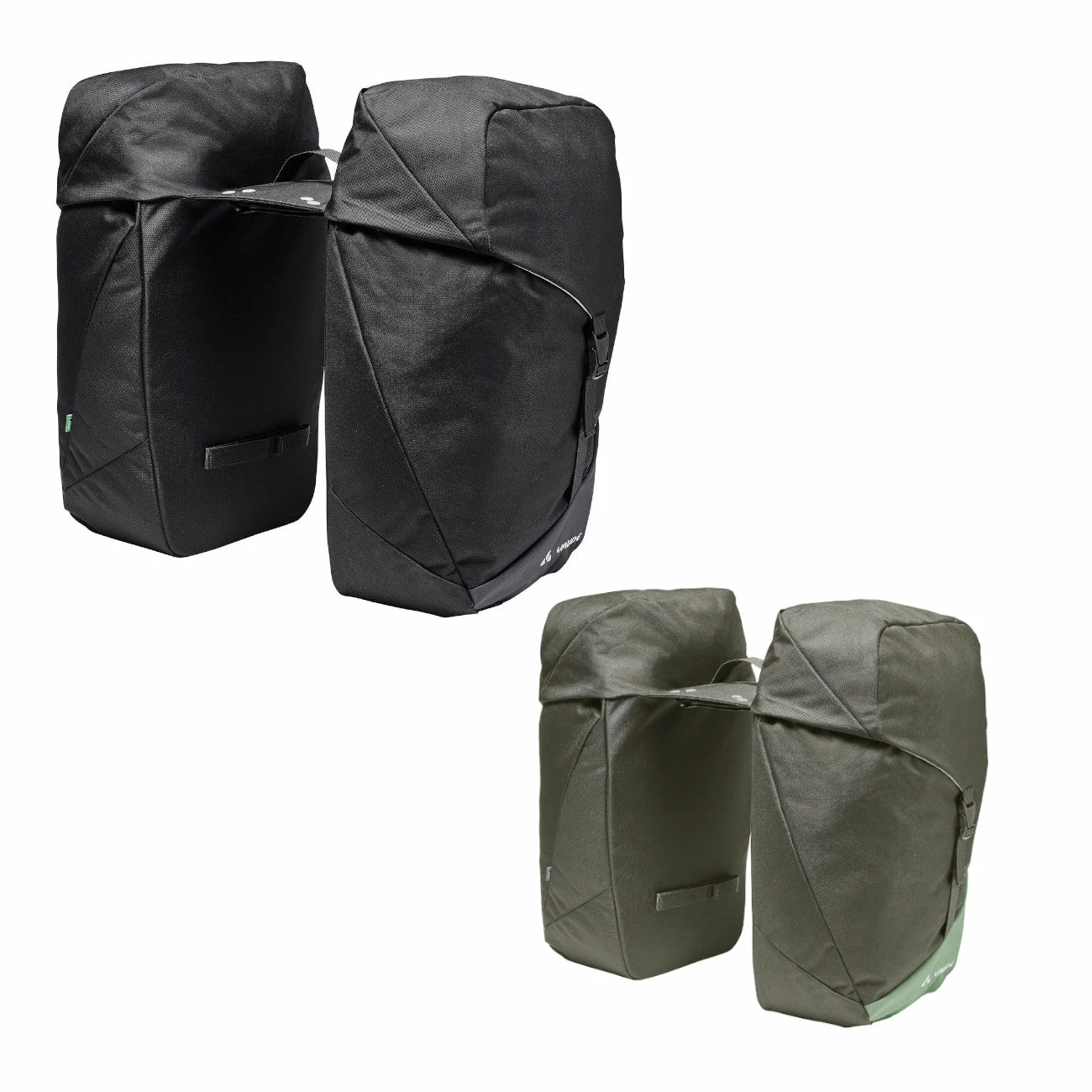 Climatiquement neutre et de fabrication écologique, la sacoche TwinRoadster Vaude est composé de polyester issu du recyclage de bouteilles PET. Elle porte ainsi le label Green Shape de la marque. Également, les émissions ont été réduites le plus possible et ont été compensées par « myclimate », un organisme indépendant à but non lucratif. Par ailleurs, Vaude est engagée en tant que membre « Fair Wair » et assure des conditions de travail équitables à ses travailleurs.