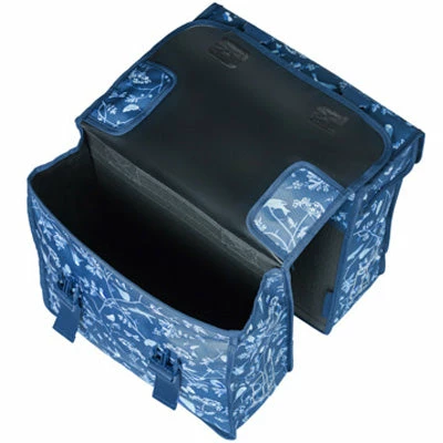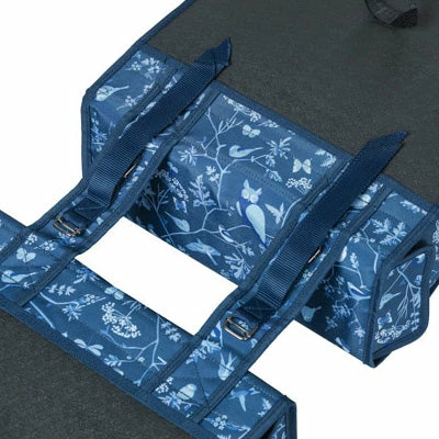 La sacoche double Wanderlust de Basil se décline en bleue avec motifs oiseaux, pour un look moderne, féminin et tendance sur votre vélo. Grâce à son grand volume de 35 L (2 x 17,5 L), elle vous permet de transporter tout ce dont vous avez besoin, pour faire vos courses à vélo, aller au travail ou visiter des amis. Son matériau en polyester hydrofuge protège vos affaires de la pluie. Couplé à cela, le rabat avec fermeture à boucles assure une bonne protection de vos affaires à l’intérieur de la sacoche. De plus, le fond des sacoches est rigide, pour un bon maintien même lorsqu’elles ne sont pas remplies au maximum.