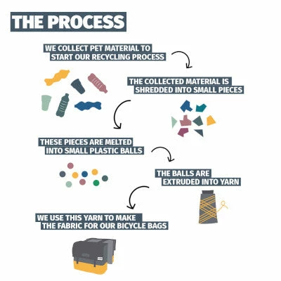 À savoir que cette double sacoche fait partie de la gamme de produits recyclés développée par la marque Urban Proof. Elle est issue à 100% du recyclage de bouteilles en plastique PET. 68 bouteilles de 500 ml pour être exact (voir photos 5 et 6).