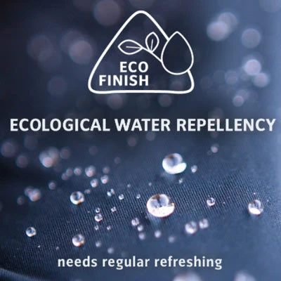 Le polyester rend la sacoche résistante à l’eau. Vaude a également utilisé la technologie Eco Finish, un revêtement hydrofuge sans PFC qui rend la sacoche déperlante : les gouttes d’eau ne pénètrent pas le tissu mais se contentent de perler. Ainsi, pas d’humidité dans la sacoche. La sacoche est, de plus, livrée avec une housse de pluie. Cette dernière est 100% en Polyamide avec revêtement Polyuréthane 190 T.