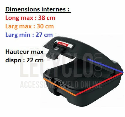 Le top case vélo Citybox GTA de Klickfix est un coffre de transport étanche, robuste et sécurisé pour transporter 22 litres d’accessoires volumineux à l’abri des regards et des intempéries. Le Citybox mesure 44 de long x 34.5 de large x 23 cm de haut à l’arrière / 17 cm à l’avant (côté selle) et offre assez d’espace pour ranger un casque, une veste, un antivol, avec d’autres accessoires jusqu’à 10 kg pour votre balade.